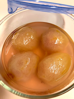 一パック分、コンポートにして(砂糖シロップで煮つめた物です~🍓)