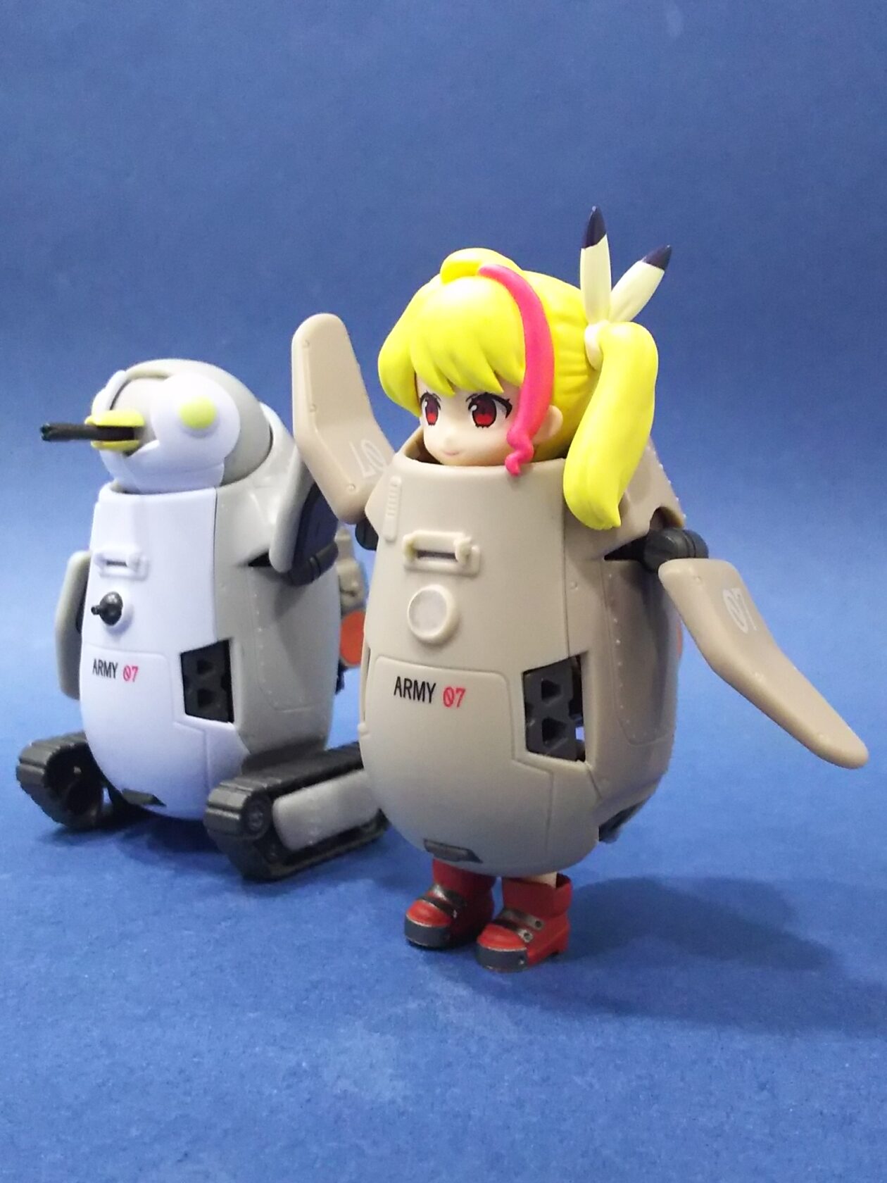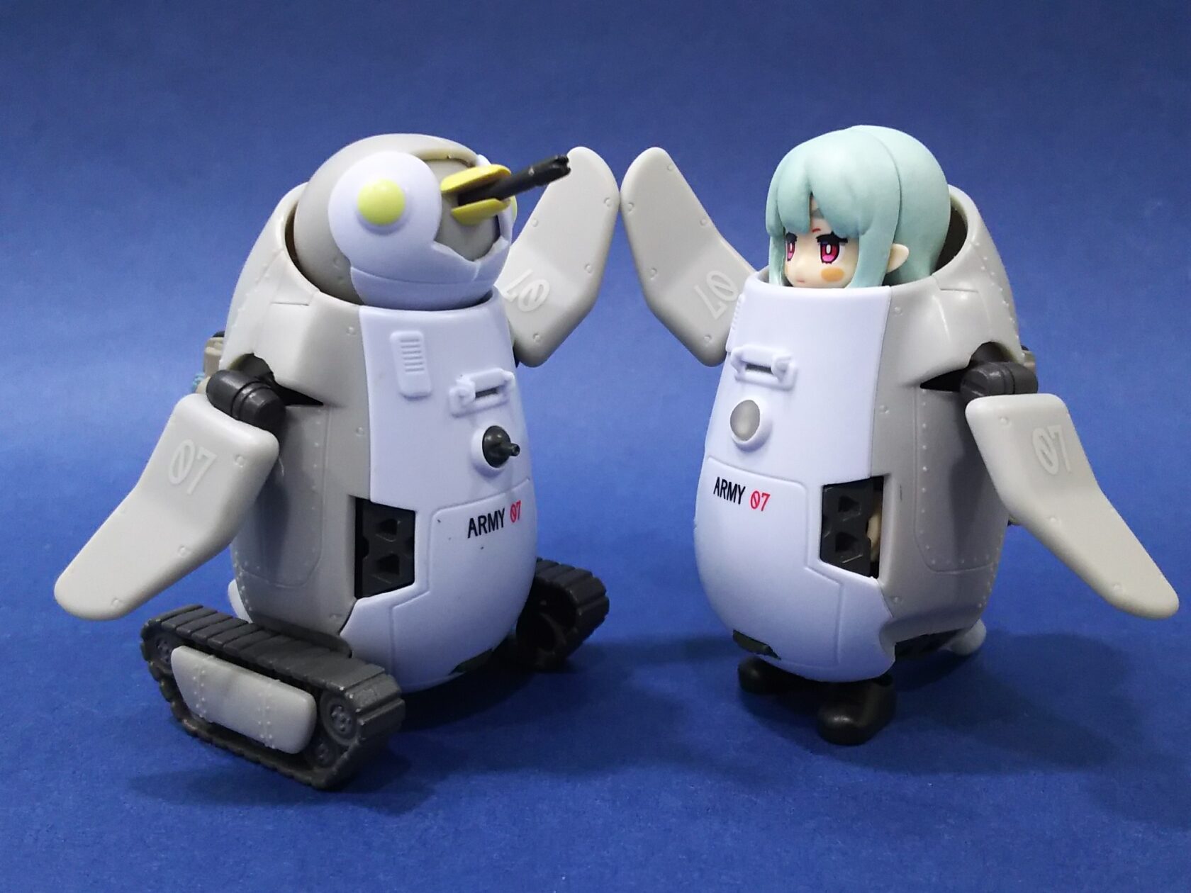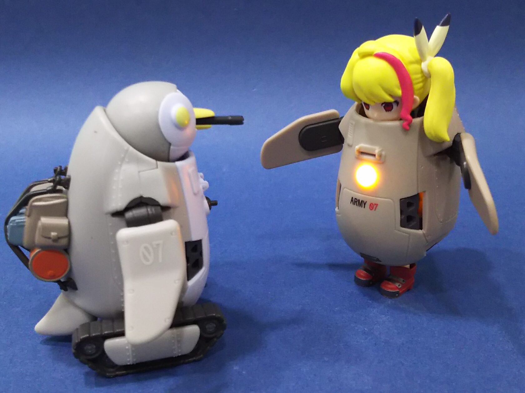 実は発想に関しては先にXでこんな感じで遊んでた人達が居て、それを見て自分もやりたくなってペンギンメカを買った流れなんです😅あまり二番煎じはしたくない主義なんですが今回はどうしても❗️ってなりました。その代わりオモリで自立させたりLED入れたり5体全部揃えたりとコダワリました🤤✨