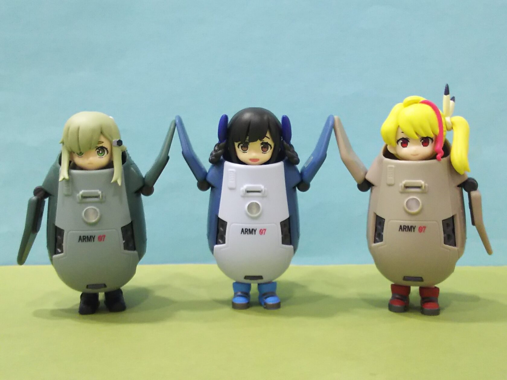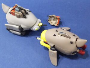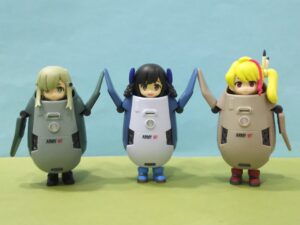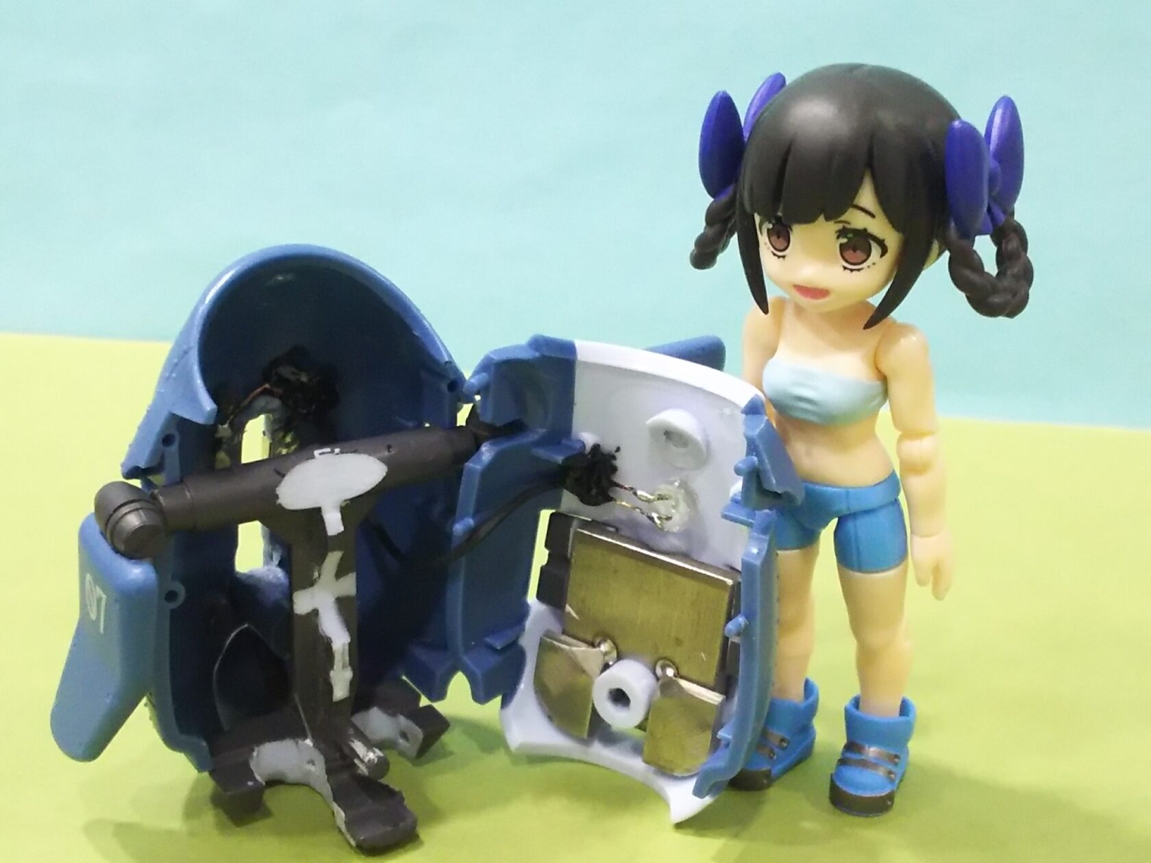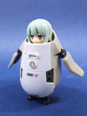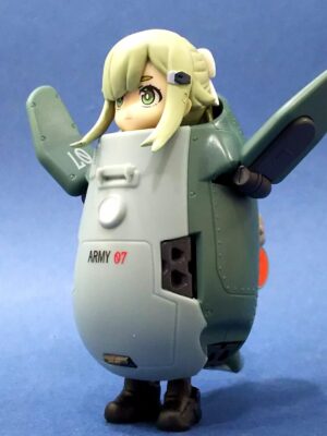 コレの頭とキャタピラを外して本体をコジ開け、内部フレームを削り倒してカプセルトイ女子が入るようにしました😃