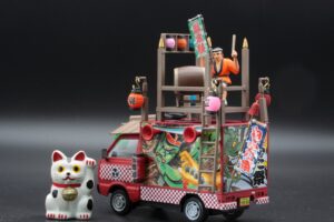 ムラの無い、さすがの塗装ですね。 情報量が多くて 楽しいです。移動販売車で、太鼓とは ねぶた入ってるし カオスかも。 ??…スピーカーシステムなの(汗