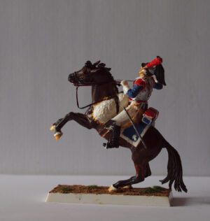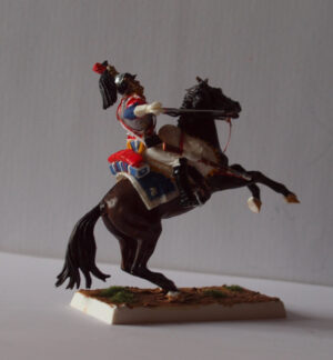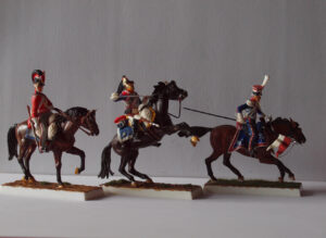 候補としては「エアフィックスの54㎜の仏帝国親衛槍騎兵第一聯隊兵士(渾名:ポーリッシュランサー)、スチロール樹脂」、「シリーズ77の90㎜ゴードンハイランダー(1857-859)、ホワイトメタル」、「ミッチェル・ロバートの100㎜スキタイノーブルマン(貴族)、レジン製」のうち、病後の作業になりますので、作業の楽なスチロール樹脂のエアフィックスの仏帝国親衛槍騎兵第一聯隊兵士と致したいと思います。HISTOREX社に比べて部品点数など見た目は粗いですが、動きはエアフィックスの方がありますので数をそろえればワーテルローでのネー将軍の騎兵突撃シーンの一部を再現できます。