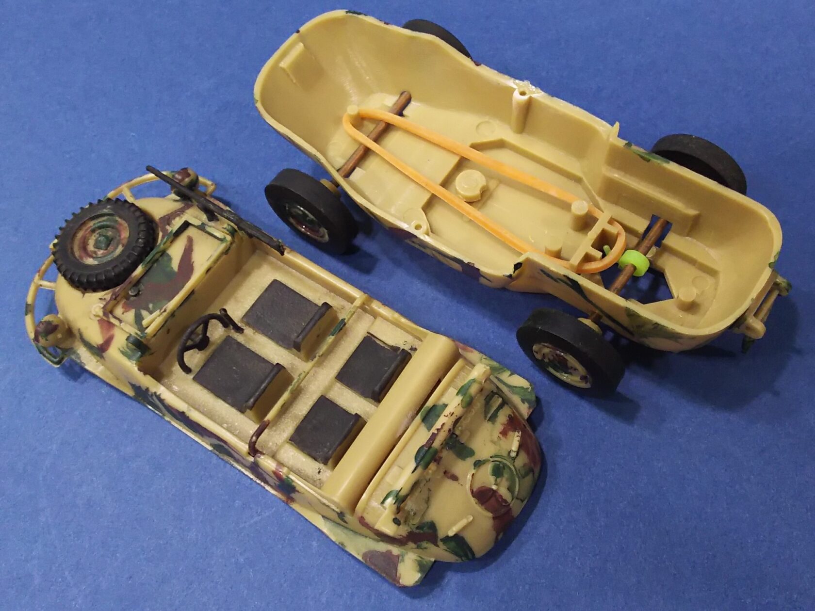 シュビムワーゲン × 4台 X Facebook 2026.02.05 偽ホビコム(入り口) › フォーラム › 偽ホビコム › みんなの作品写真 › シュビムワーゲン × 4台 タグ: オール筆塗り限定オートモデルコンペ このトピックには3件の返信、4人の参加者があり、最後にコウにより6時間、 53分前に更新されました。 3件の返信スレッドを表示中 投稿者 投稿 2026年2月5日 8:01 PM #10542 Dr.カノン参加者 筆塗りコンペ用に引っ張り出した過去作です。’92年頃に作りました。当時実車が欲しかったんですよ~😅 ①タミヤ 青白ツートンって良いな~と。 ②タミヤ レトロな水色も良いな~と。 ③タミヤ 上の2点との比較用の軍用。超テキトー。 ④クラウン 上のタミヤとの比較用。更にテキトー。ゴム動力。 残ってる作品の中では最も古い部類なので触ってて懐かしかったです🤤良い機会でした~✨ Attachments: ブラボー 2026年2月5日 9:48 PM #10552 白玉餡参加者 こんばんは、Dr.カノンさん! オール筆塗り限定オートモデルコンペ参加 おめでとうございます~!ฅ^ơωơ^ฅ♡ 水陸両用車?!ですか?これ~?アタシあまり詳しくないんですが~💦 トリコロールカラーもどこかオシャンティ~♫で カッフェ~の前にディスプレイしても面白そう(✿˘艸˘✿) 芸達者な方が弄ると筆塗りがどうとか そういう問題じゃないのよね~✨✨って お見本のような作品ですわね~°˖✧◝(⁰▿⁰)◜✧˖°✨✨ ブラボー 2026年2月5日 10:12 PM #10553 paopao0079キーマスター ご参加ありがとうございます。 これは旧ホビコムでも投稿されてない作品でしたっけ?失礼ながらあまり覚えてないので。 軍用の水陸両用車ですよね。実車も刷毛塗りしてても不自然じゃないので筆塗りコンペ向きのキットですね。 実写は確かに欲しいですね。 ブラボー 2026年2月6日 12:53 AM #10557 コウ参加者 Dr.カノンさん、こんばんは。 公道を走ると注目の的になりそうですが、かっこいい車ですね。 当時実車が欲しかった とは、??意外や新しい車なのでしょうか。 ②のカラーでミゼットみたいです。 地元のスーパーにミゼットの実車が置いてありましたが、100%同じ色してます。 リアル。 ( ´ ー` 厚塗り? な感じが、筆塗りらしくて いいですね-。 軍用車など、実車も厚塗りそうだから すごく味わいを感じます。 ブラボー 投稿者 投稿 3件の返信スレッドを表示中 このトピックに返信するにはログインが必要です。 ログイン ユーザー名: パスワード: ログイン状態を保持 ログイン