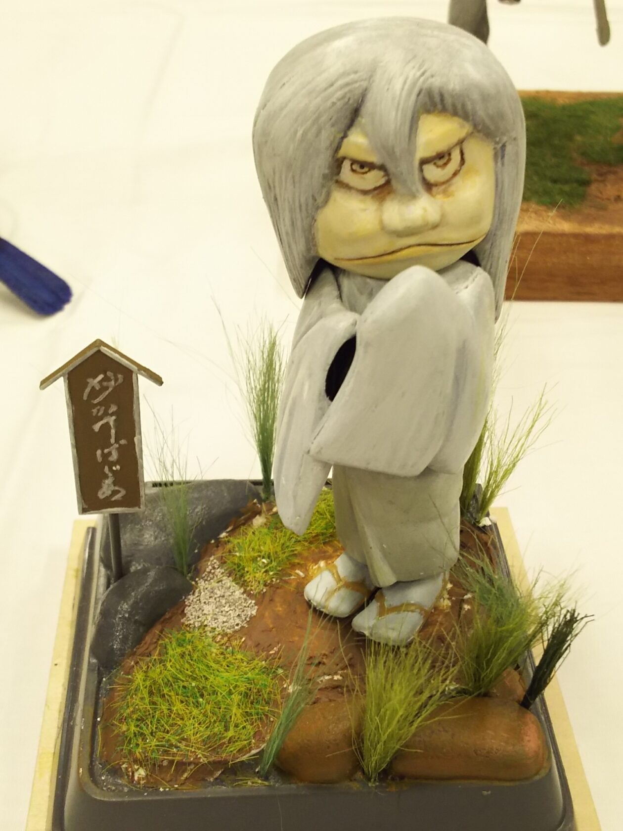 木にとまるキットだったらしいですが、今回は 木に固定されてませんね。 地面の餌を啄むように見えて これもイイと思います。渾身の砂かけ婆まで集まって、作品多くて 華やかです。