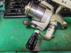 かれこれ25年程前のリールですがハンドルノブが劣化してボロボロになってました。