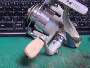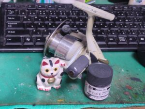 最近のリールはもっと性能が上がっているので買い換えるのもいいのですが、昔の物も使えないわけではないし、復帰後続けるかどうかもわかりません。修理用のパーツを取り寄せるにもメーカーにも在庫はありませんし、ここはモデラーらしく修理することにしました。修理と言っても劣化したノブをエポパテを盛って作り直し塗装しただけです。精度もそれほど高くありませんが、魚を釣るのに不足はないでしょう。