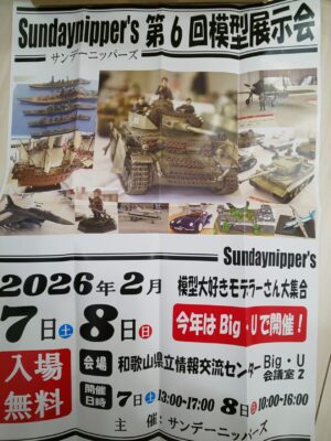 明日14日は熊野模型クラブさんの作品展の開催日ですので、有志5名で訪問致しますからホビー作業などはお休みとなります。