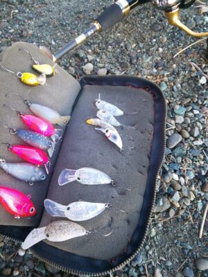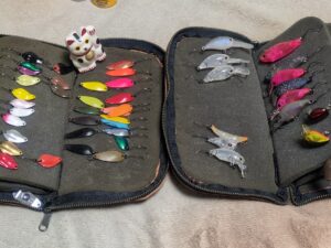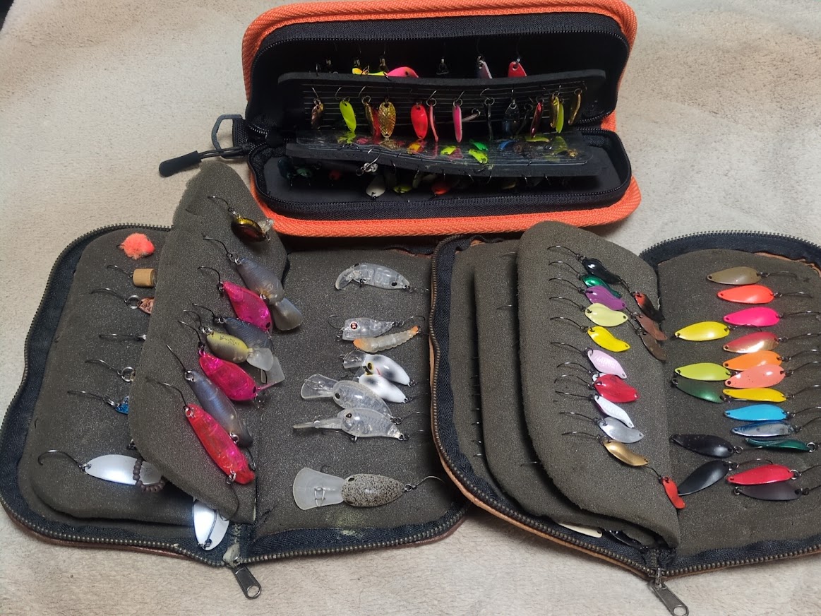 池の中には魚が何千匹と入っているので釣り方が上手ければもっと釣れるんじゃないかと思います。ルアーケースは同じようなのがもう2つあって、もう少し細かいのがじゃらじゃら入ってます。