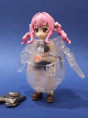 今回の女子はアクアシューターズ!一番の美女と囁かれる『苗村ことこ』さん。でも制服はペンギンに入らないのでガシャポンクエストの『勇者の娘』の素体を使用。白色点滅LED + ピンクレンズを装備。
