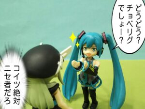 フィギュア EMGK(※ただの小話です※) 2026.04.09 タグ: フィギュア このトピックには6件の返信、4人の参加者があり、最後にDr.カノンにより11時間、 37分前に更新されました。 3件の返信スレッドを表示中 投稿者 投稿 2026年4月9日 10:24 PM #12525 Dr.カノン参加者 ~前回のあらすじ~ 電子上の存在のハズの初音ミクが実体として現れた!それを見たレジ子は直感した。(コイツ、偽者じゃね?)と。 ※2番と3番のコーラス部分は省略してるので脳内補完お願いします🙇♀️⤵️ Attachments: ブラボー 2026年4月10日 12:28 AM #12541 コウ参加者 Dr.カノンさん、こんばんは ハハハ・・・(^ -^; 見かけは立派なミクでも 「中身はヤバいかも」 ですね-。 (東の山では、結局ハゲてても問題無しの歌で 脱力感があります) ( ´ー` ニセ物かも?? ブラボー 2026年4月10日 4:33 PM #12585 Dr.カノン参加者 コウさん、こんばんは😃 見かけだけも評価して頂きありがとうございます❗️ まあなんせウチで捏造したミクなので中身は私に似て激ヤバです😁 全員の名前がハメハメハな南の島に対抗して 全員の頭がツルッパゲな東の山を捏造です😂✨ Attachments: ブラボー 2026年4月10日 1:30 AM #12543 白玉餡参加者 こんばんは、Dr.カノンさん! ハゲハゲハ~♪ハゲハゲハゲハゲハゲハ~♬♪ クセになるリフレイン~♫( ⑉¯ ꇴ ¯⑉ )ジャイアンか?! レプリカでもクロ~ンでも超絶カワイイからいいのだ!! リントラもガシャクエもレア値で オイラのヘソクリ💧ピ~ンチじゃよ_:(´ཀ`」 ∠):_ ブラボー 2026年4月10日 4:39 PM #12587 Dr.カノン参加者 白玉餡さん、こんばんは😃 風の全てが彼の歌 星の全てが彼の夢 を 人の全てが彼の物 彼の全ても彼の物 で行こうとしたんですけどなんか物騒なだけでハクが無いな😨と思ってジャイアン流にしました😂 超絶カワイイの評価嬉しいです❗️ありがとうございます😆✨ リントラ、ガシャクエ共に去年より値上がってる感あります😰アクアシューターズ!は若干マシかも🤔 Attachments: ブラボー 2026年4月10日 5:36 PM #12589 paopao0079キーマスター サイト名変えたのにニセ者には縁がある。それが偽ホビコム。 ブラボー 2026年4月10日 5:42 PM #12590 Dr.カノン参加者 『偽』ホビコムからホビ『魂』になったのに 『魂』バディーズを元に『偽』者を作る暴挙😂 Attachments: ブラボー 投稿者 投稿 3件の返信スレッドを表示中 このトピックに返信するにはログインが必要です。 ログイン ユーザー名: パスワード: ログイン状態を保持 ログイン