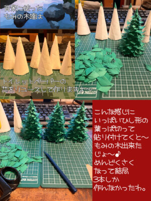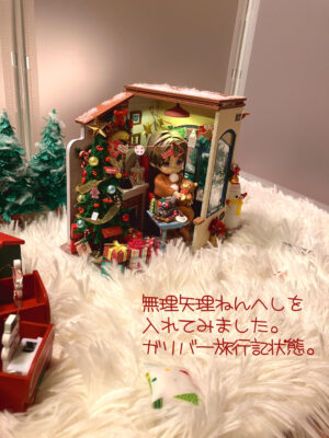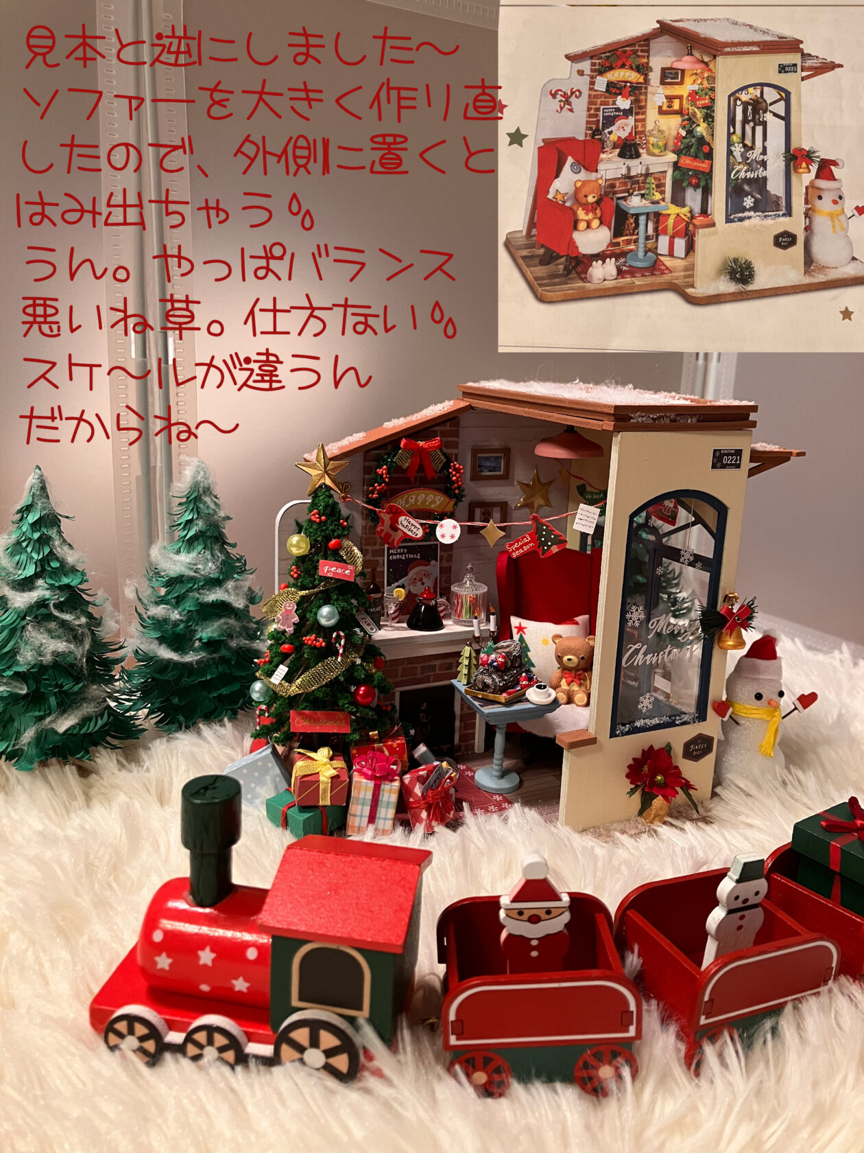 こんにちは。ドールハウス作ってメリークルシミマス?でも完成したものはすごく可愛くてクリスマスが溢れてますよ!もみの木の作り方もナルホド!って思いました。汽車との組み合わせもバッチリで異国情緒あふれる仕上がりですよ!改めてメリークリスマス(⁠≧⁠▽⁠≦⁠)