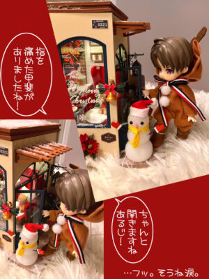 トイレットペーパーの芯からもみの木、白ふわの大地を這う汽車など気の利いた演出も抜かりなしですね😁素敵です❗️ねんどろいどに対しては小さいものの、絵的にはコミカルで良い感じではないでしょうか😙いや~お蔭様でクリスマス気分になりました🎶