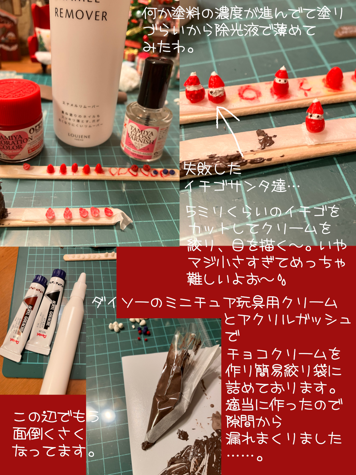 そんな思い出のケーキをミニチュアサイズで再現とはッ😆イチゴサンタも可愛い😍そして失敗したイチゴサンタの哀愁もタマラナイです🤤✨