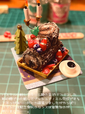 イチゴショートのミニチュアなんてそこら辺で普通に買えそうなので、ブッシュドノエルで正解。
